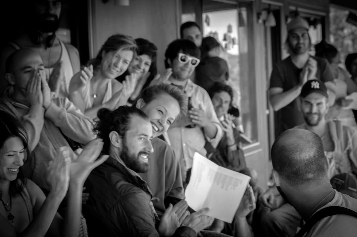 March 16, 2015 BurningWoman_SongPicture The group listening to Randy play original songs. Photo credit: Lou Baldanza